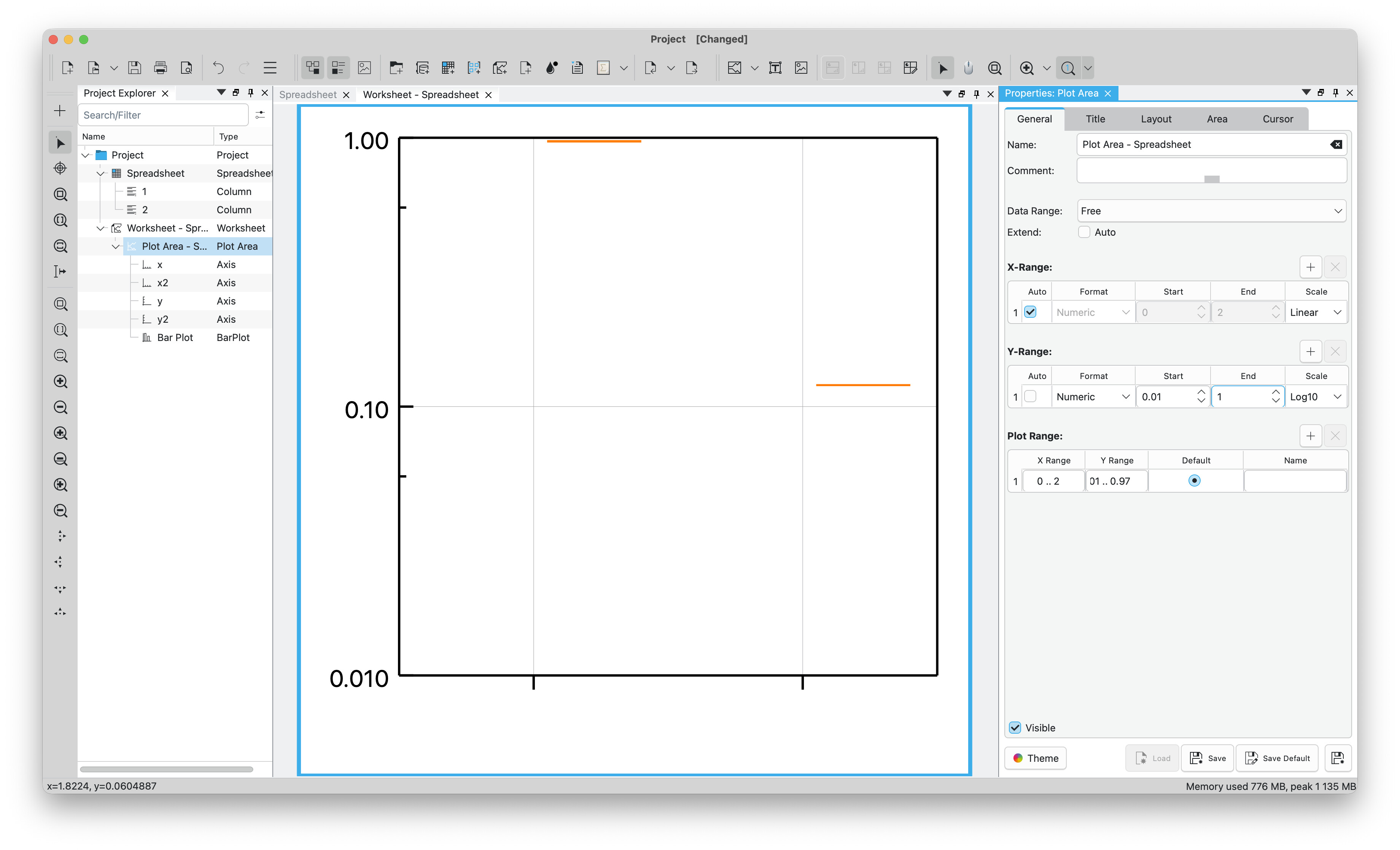 We did a fix for this problem today. If you have a chance to give our current development version a try, please check the builds mentioned on our homepage (windows build and AppImage for linux were updated today). There is also a short tutorial on this topic on Log-Scale Bar Plots — Labplot Manual 2.12 documentation