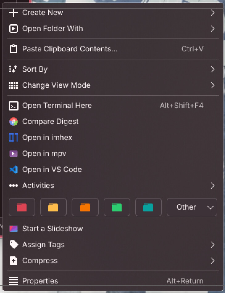 I just tested the Breeze 6.5.3-2 on Arch, with the applied fixes to the big padding in context menu. While it is still taller, it’s not as jarring as before, but there’s a little thing that’s been still bothering me, and I’m wonder if it’s by design or not: