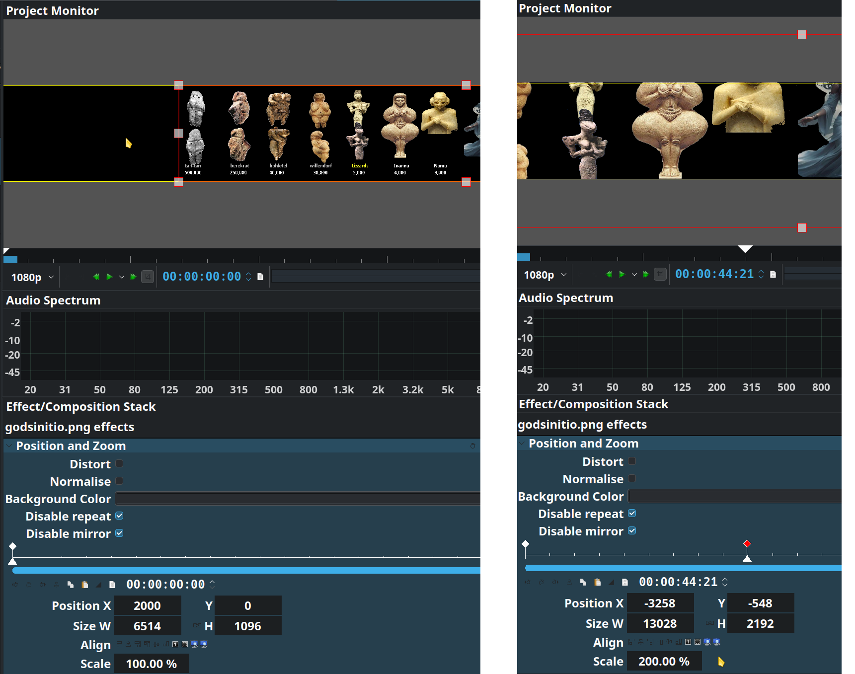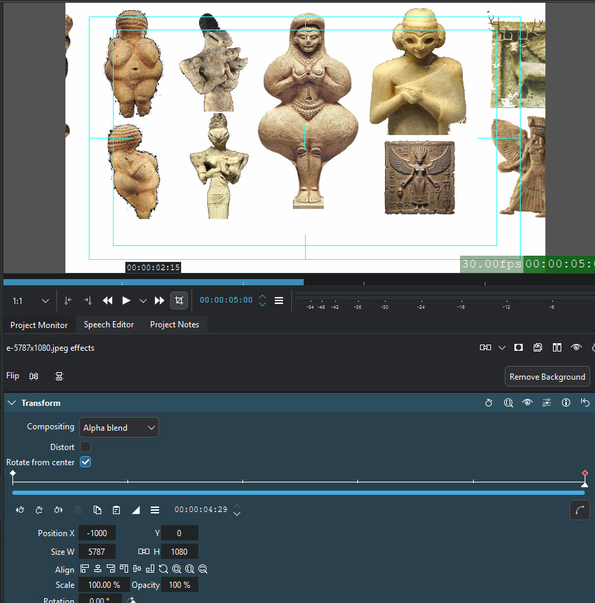 Then load the 6109x1140 image and put it on the timeline. If Kdenlive scales it to fit the project dimensions, use the Fit to Height or Adjust to original size buttons in the Transform effect: