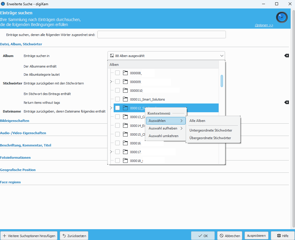 Correct, my point concerns the advanced search. My wish is to right-clic on a (sub-)album and to view an item like “Advanced search here”, which avoids me to go through the entire hierarchy of the albums in order to select the (sub-)album I want to work on. It would be so cool…