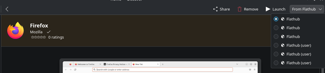 When trying to install software with the command ‘flatpak install [SOFTWARE]’, I would expect the order of repos offered to me to be;