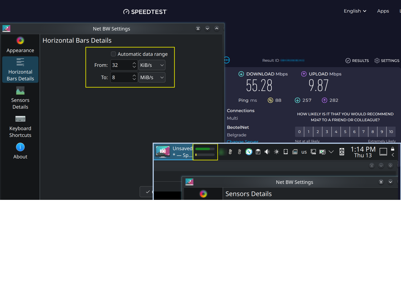 For example on a stock Cable plan lets say I get 50Mbps down and 10Mbps up. Is it possible to configure the System Monitor bar gauge so that the 1st sensor will max out the bar at 50Mbps and the second sensor will max out the bar at 10Mbps? (although these are my paid speeds for my VPN plan only).