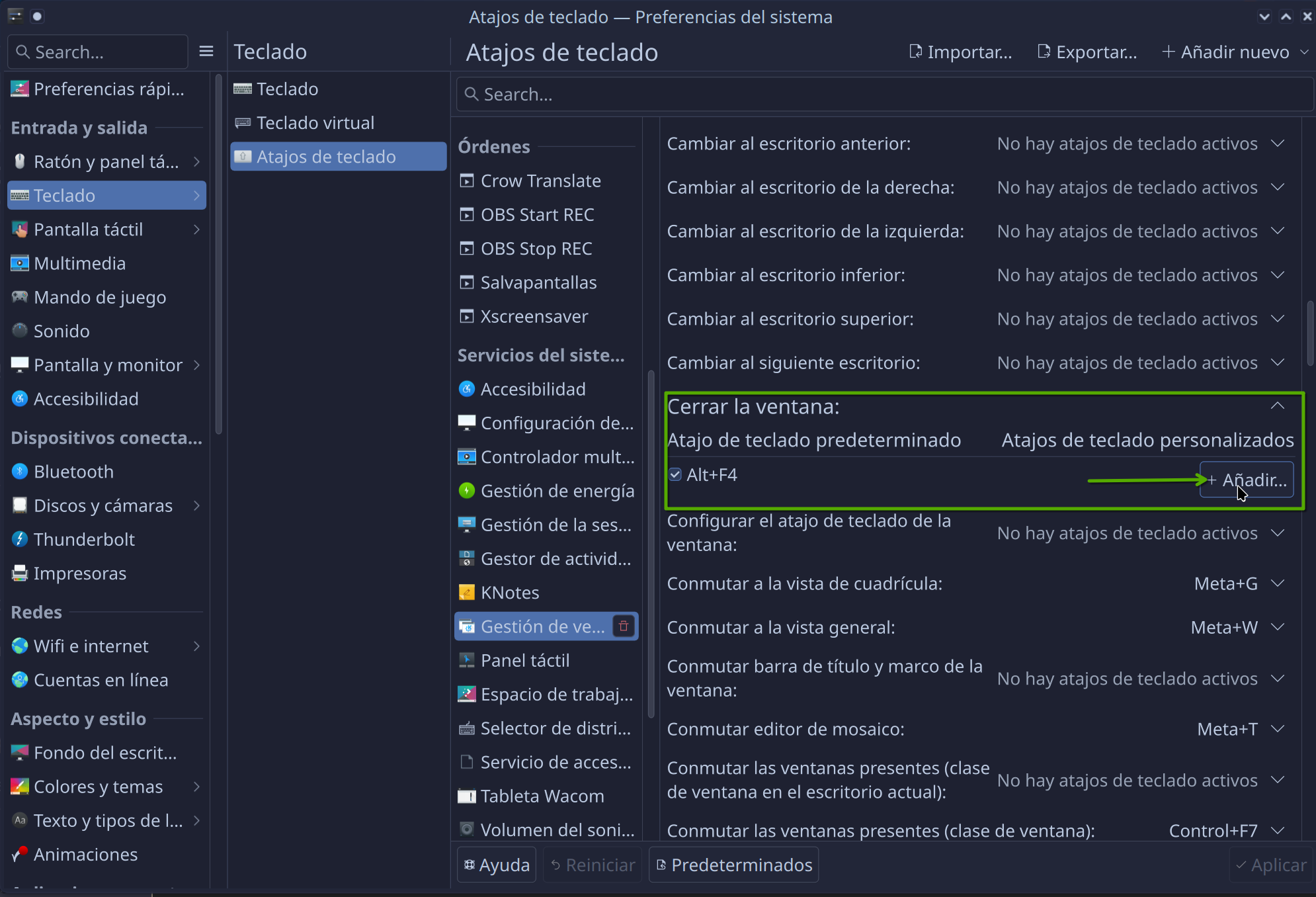 Unfortunately, I don’t speak Spanish. However, I have now found the correct command and created a shortcut with it.