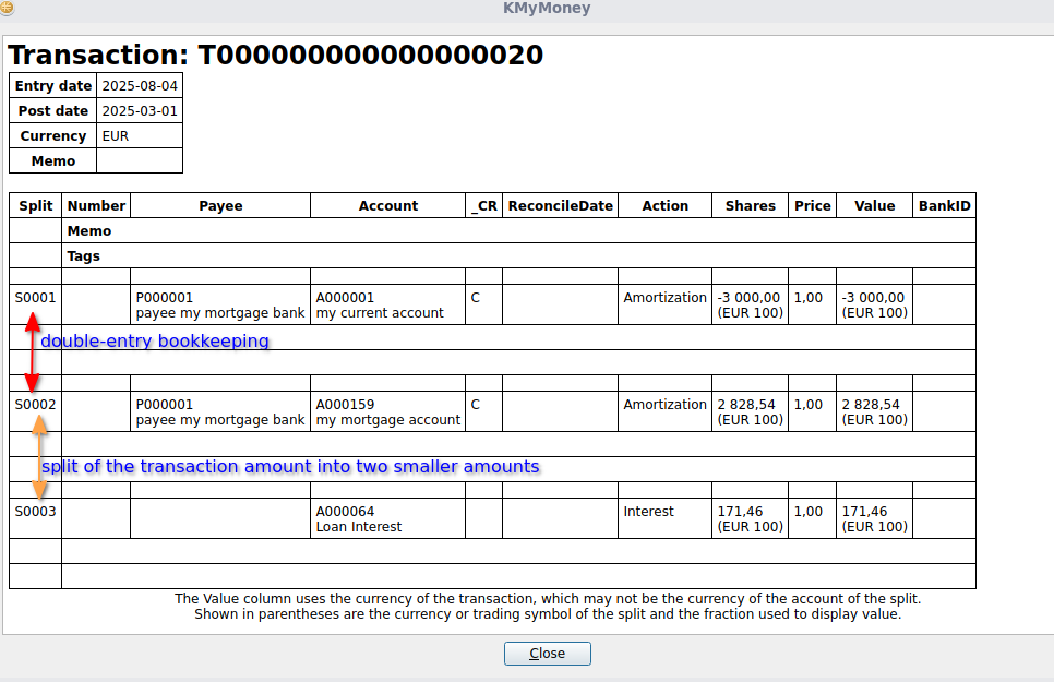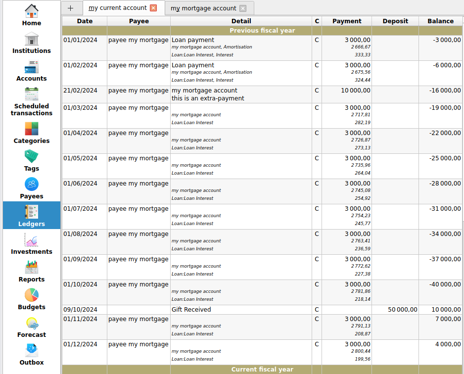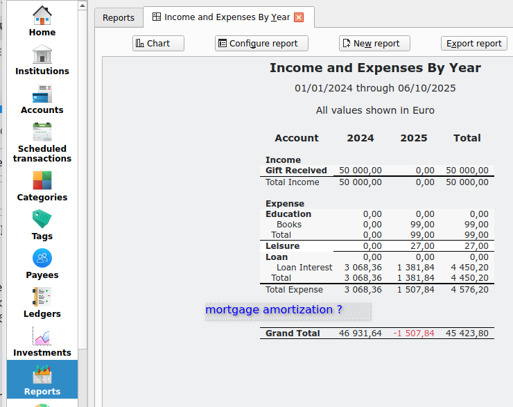 => this result in a satisfying report, i see the mortgage amortization part and the grand total 2024 = 4.000 €