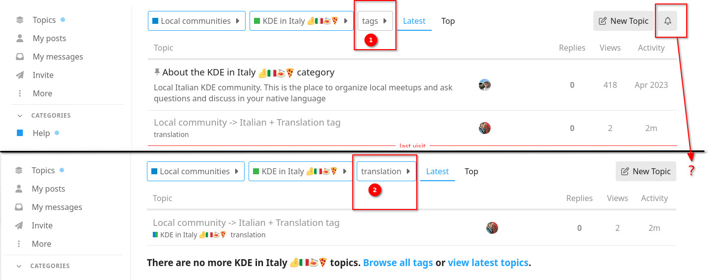 - If i browser “local communities” → “italian”, then the bell