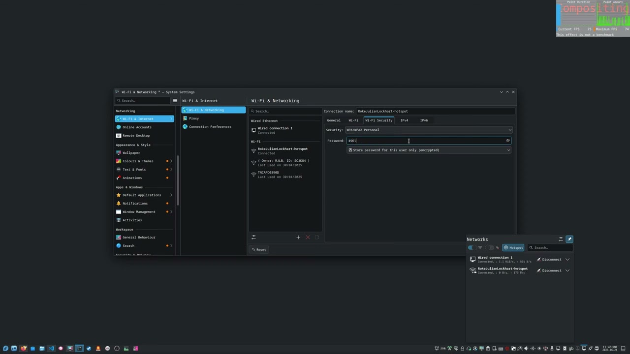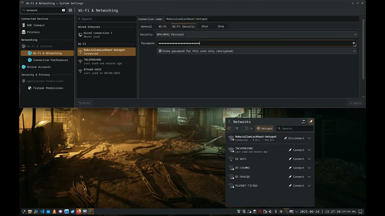 I’d run qdbus org.kde.Shutdown /Shutdown org.kde.Shutdown.logoutAndReboot, and that indeed remediated the inconsistency between kcm_networkmanagement and plasmashell. However, it’s achieved that by merely reverting my password, and it reproduces: