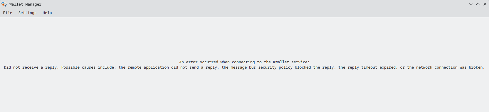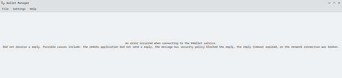 When I attempted to create the new wallet, KWalletManager5 SIGABRT’d, per bugzilla.redhat.com/show_bug.cgi?id=2437325. All subsequent invocations are useless: