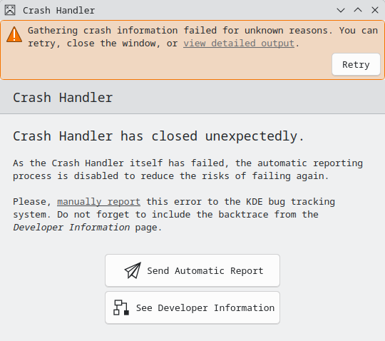 Regardless, at least this ordeal allows me to re-confirm bugs.kde.org/show_bug.cgi?id=512512 with plasma-drkonqi-6.5.5-1.fc43.