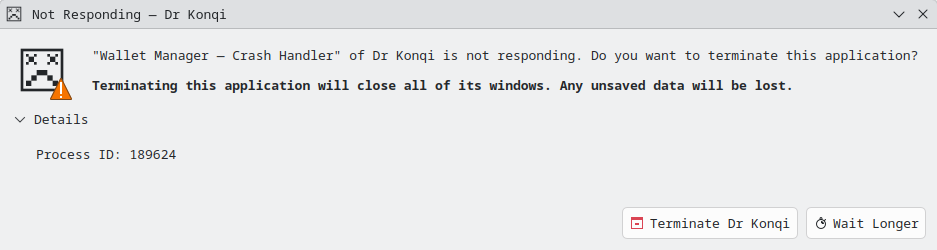 Worse, because KWallet is ANR’ing, I can’t report its crashes via Konqi: