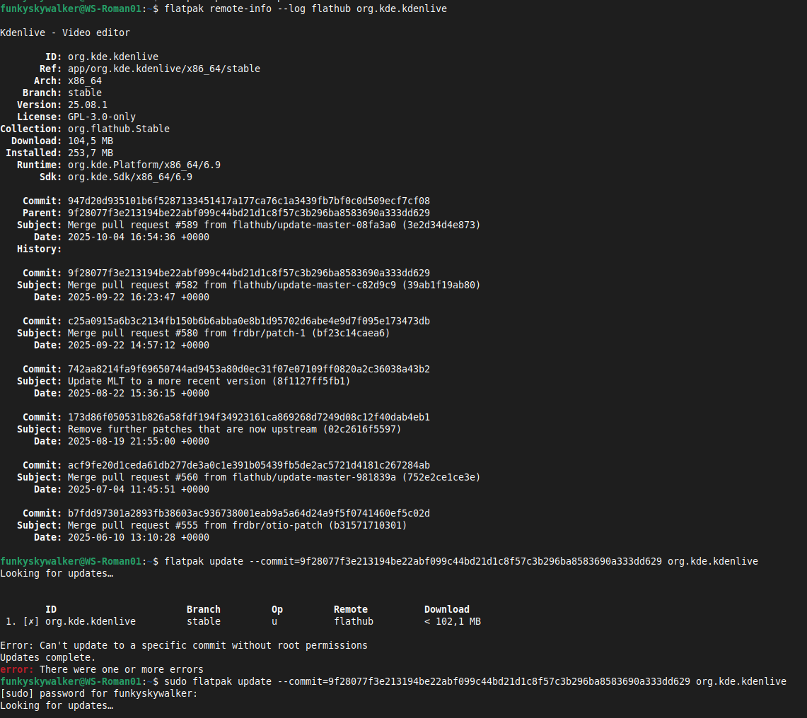 out of the blue, my kdenlive flatpak (25.08.1) stopped working.