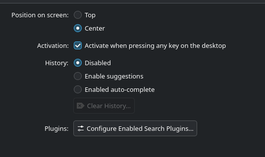 I’m using Krunner and it always retains previous input, with no option to change that behavior, am I missing something?