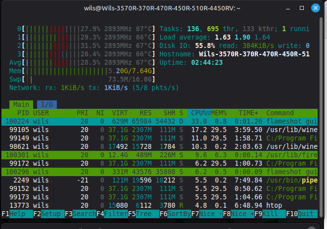 Proof of the ‘Green Profile’: The htop log confirms temperatures holding steady at 66-67°C. We’ve proven that you can play LotRO without jet-engine fan noise or thermal throttling.