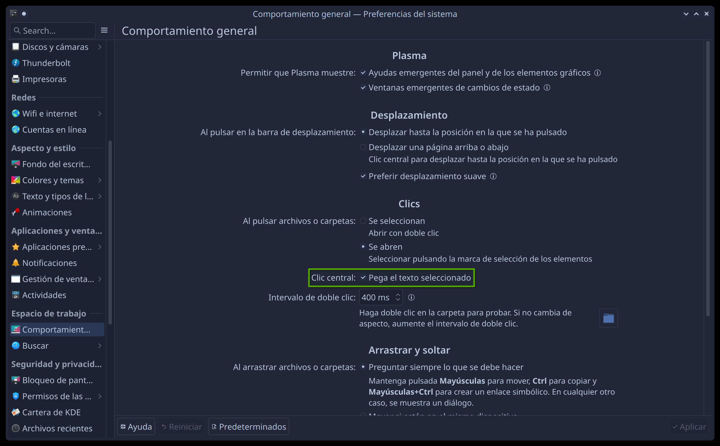 I’d like to disable the middle click paste feature and someone suggested, in another topic, to disable it in the System Settings.