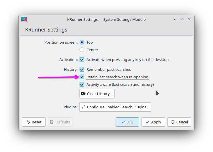An option for Klipper to automatically clear the search field after selecting an entry would be very helpful, so I don’t have to this manually every time.