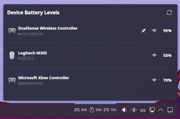 See battery percentages for all your Bluetooth and wireless devices in the tray area