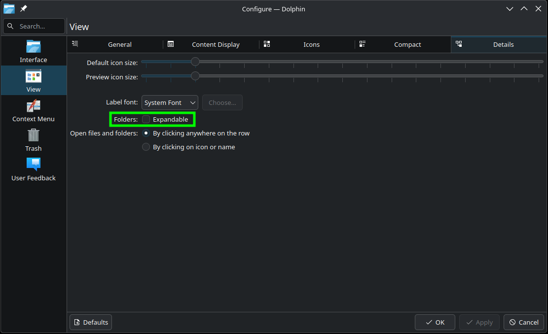 The Details view includes an option called “Expandable” in its configuration. In my daily workflow I use view modes 1, 2, 4. I keep Expandable disabled because I don’t need a folder tree. I prefer to see only the folders within the current directory.