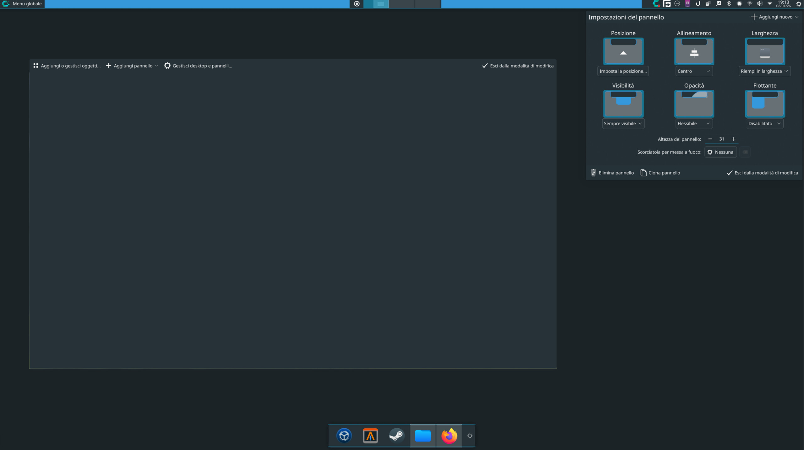 Coming back to the issue, I deleted what was inside the .cache folder, logged out and logged back in, but none of the problems have been resolved yet. Moreover, inside the panel settings I see this; I’m not sure which setting you wanted me to check